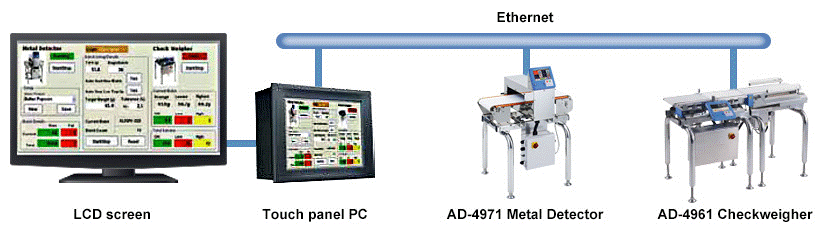 Для бесперебойной связи с внешними устройствами в устройстве предусмотрен протокол Modbus TCP. С внешнего устройства можно выполнять, останавливать взвешивание, получать данные и изменять продукт.