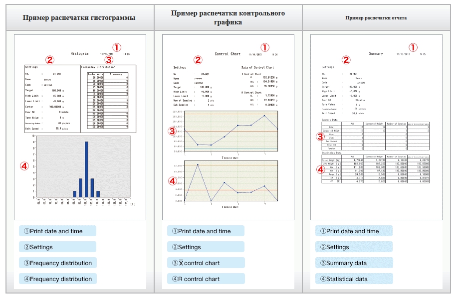 Предусмотрен вывод отчетов в различных формах, таких как гистограммы, X-графики, R-графики, полные отчеты и т.д.