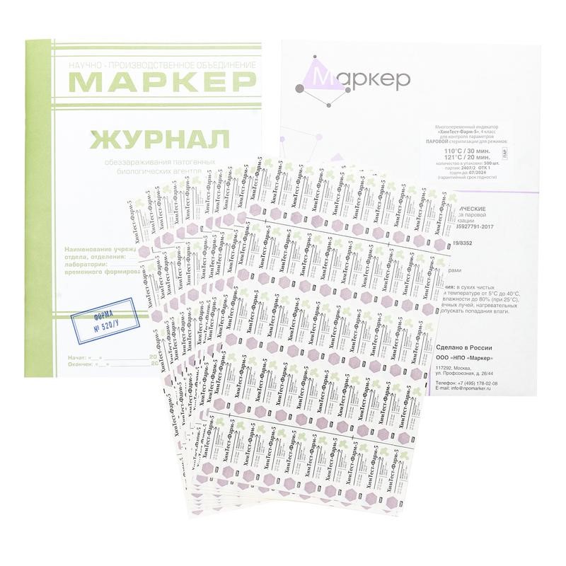 Многопеременный индикатор «ХимТест-Фарм-5», 4 класс для контроля параметров пар. стерил. для режимов: 110С/30 мин, 121С/20 мин. (500 шт.)